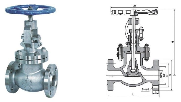 不銹鋼美標法蘭截止閥美標法蘭截止閥閥體采用球形結構,外形美觀,閥座閥瓣采用錐形密封結構,密封是可靠的。 法蘭連接鋼球閥適用于Class150300,工作溫度為29425(碳鋼)或40550(不銹鋼),用于切割或連接管道中的介質。可以單獨使用不同的材料。 適用于水,蒸汽,油,硝酸,醋酸,氧化介質,尿素等介質。 2507(UNSS32750)合金由25鉻,4鉬和7鎳組成。 具有很強的強度和耐腐蝕性,主要用于化學加工,石化和海底設備。 具有很強的耐氯化物腐蝕性,高導熱性和低熱膨脹系數。 鉻,鉬和氮含量較高,耐點蝕,縫隙和均勻腐蝕。 1。該產品的設計和制造符合美國國家標準ANSI B16.34,英國BS1873和其他國外先進標準的要求。 2。閥門的外形為桶形或流線型,形狀美觀,流道形狀直通,流體阻力小。 3。關閉部分(閥門)和閥座的密封面由錐面密封,錐面具有小的閉合力,抗腐蝕性和可靠的密封性。 4。閥座可以是更換閥座,可以與關閉部件的密封材料結合使用,以滿足工作條件,延長使用壽命。 5,大口徑,高壓關閉截止閥根據閥桿傳動方式的關閉力的需要被提升,并配備帶有沖擊手輪的滾動軸承,以減小關閉力。 設計和制造標準:API 6D 結構長度標準:ASME B16.10 壓力溫度額定值: ASME B16.341 測試檢驗標準:API 598 四,J41W法蘭美標不銹鋼截止閥參數: | DN | 150Lb 凸面法蘭(RF) 主要尺寸(mm) | 重量 | | mm | in | L | D | D1 | D2 | b | n-φd | H | D0 | | 15 | 1/2 | 108 | 89 | 60.5 | 35 | 11.2 | 4-16 | 241 | 100 | 6.9 | | 20 | 3/4 | 117 | 98 | 69.9 | 43 | 12.7 | 4-16 | 241 | 100 | 9.8 | | 25 | 1 | 127 | 108 | 79.2 | 51 | 14.2 | 4-16 | 242 | 125 | 13.5 | | 32 | 11/4 | 140 | 117 | 89 | 63 | 16 | 4-16 | 280 | 160 | 19.5 | | 40 | 11/2 | 165 | 127 | 98.6 | 73 | 17.5 | 4-16 | 286 | 160 | 28.5 | | 50 | 2 | 203 | 152 | 120.7 | 92 | 19 | 4-19 | 368 | 200 | 18 | | 65 | 21/2 | 216 | 178 | 139.7 | 105 | 22.4 | 4-19 | 387 | 200 | 30 | | 80 | 3 | 241 | 190 | 152.4 | 127 | 24 | 4-19 | 411 | 250 | 41 | | 100 | 4 | 292 | 229 | 190.5 | 157 | 24 | 4-19 | 454 | 250 | 64 | | 125 | 5 | 356 | 254 | 216.0 | 186 | 24 | 8-22.5 | 455 | 350 | 86 | | 150 | 6 | 406 | 279 | 241.3 | 216 | 25.4 | 8-22.5 | 541 | 350 | 113 | | 200 | 8 | 495 | 343 | 298.5 | 270 | 28.4 | 8-22.5 | 651 | 450 | 178 | | 250 | 10 | 622 | 406 | 362.0 | 324 | 30.2 | 12-25.4 | 800 | 450 | 270 | | 300 | 12 | 698 | 483 | 431.8 | 381 | 32 | 12-25.4 | 1231 | 600 | 350 | | 350 | 14 | 787 | 533 | 476.3 | 413 | 35 | 12-29 | 1450 | 600 | 460 | | 400 | 16 | 914 | 597 | 539.8 | 470 | 36.6 | 26-29 | 1645 | 600 | 590 |