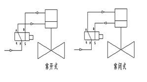氣動氧氣快速切斷閥--作用原理及結(jié)構(gòu)說明 當控制器按事先編好的程序?qū)δ硞€電磁換向閥輸出一個電信號,該電磁換向閥動作,使帶壓儀表氣過電磁換向閥的切換進入氣動執(zhí)行機構(gòu)的氣缸上腔或下腔,推動活塞運動使閥們開啟或關(guān)閉。閥門的工作流向應(yīng)是高進低出(如圖所示)。 |