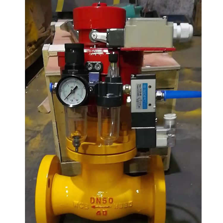 氣動緊急切斷閥是一種由空氣壓縮氣體為驅動活塞或薄膜帶動閥桿上下動作或作用動作達到閥門的開或關,常用的液氨緊急切斷閥基本都是采用活塞式單作用切斷閥,并根據用戶現場的需求配備遠程可控系統為閥門進行開關。液氨氣動緊急切斷閥配備了易熔塞,當環境溫度達到75℃左右自行熔化關閉閥門。遠程可以通過閥門的開關信號來判斷閥門的開啟或關閉狀態達到安全作用。