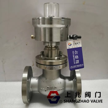 當500kPa的信號壓力通入氣缸,推動活塞,推桿下移,實現切斷閥的開(DN25~200),閉(DN10~100)。反之當電磁閥換向,氣缸上方 壓力排空,執行機構上方的彈簧將活塞及推桿提起,實現堵截閥的閉(DN25~200),開(DN20~100)。手輪機構用在當氣源發生故障或信號壓 力減少閥芯不能正常移動的場合。氣動操縱前,應先將手輪按反時針方向轉到不動為止。