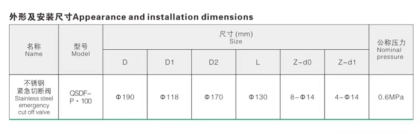 產品介紹 不銹鋼氣動海底閥:又稱內置安全停止底閥,緊急切斷閥,是安裝在金屬大氣罐體內的安全閥,是液體危險品罐式車輛的裝卸口。閥門靠近水箱的根部,不用于其他用途。它在沒有裝載和卸載時關閉。壓力平衡海床用于多儲油罐車,可用于不同油罐的單獨裝卸。三向設計旨在減少負載,操作簡單,安全可靠。 不銹鋼氣動海底閥--產品介紹: QSDF-P不銹鋼氣動海底閥安裝在燃料卡車油箱的底部。它可以加載和加油。閥門內壓小,流量大,閥體法蘭有切槽。當油箱意外時,不能攜帶破裂的槽。沖擊力大時,主體管道和水箱將自動斷開,自動定心柱塞和耐用彈簧將保持密封,水箱中的介質不會泄漏,從而確保水箱的安全。當沒有空氣源或其他原因時,可以手動折疊和打開氣缸活塞螺釘。 氣動海底閥主要由殼體,密封機構,傳動機構,油箱連接法蘭和出口法蘭組成。密封機構延伸到罐體內部,軸向自密封通過不銹鋼彈簧力進行,使得海底閥處于常??閉狀態,并且通過傳動機構執行打開和關閉操作。殼根斷裂槽可有效吸收車輛在管道沖擊下傳遞的能量,閥體從斷裂槽中斷裂,使油箱與管道分離,從而保證密封機構的完整性,避免物料泄漏,并大大提高了運輸的安全性。它被許多國際和國內石油公司,化學液體危險品運輸和其他企業使用。 目前,QSDF-P氣動海底閥的操作控制方法主要包括手動和氣動;主要材料主要有鋁合金和不銹鋼; 不銹鋼氣動海底閥--技術參數 口徑:DN80,DN100或3“,4” 工作壓力0.6MPa 最大流量250 / min 主體材料鋁合金 打開模式手動(S),氣動(Q) QSDF-P不銹鋼氣動海底閥是回收在裝載和卸載油期間產生的油和氣的裝置。它可以直接安裝在加油車的油箱頂部或人孔蓋上。它可以通過水箱底部的推桿和海底閥門。打開機械聯動裝置,也可以控制空氣源的打開和關閉。 氣動海底閥可以在裝載和卸載到儲油區的油箱期間回收由油的揮發產生的所有油氣,避免油氣泄漏,并通過其他油氣回收裝置。石油和天然氣經過濃縮和再利用,以實現節能和環保。 不銹鋼氣動海底閥的功能和特點: 1.當油罐車罐裝滿后,油氣回收閥打開,上升的液位推高油氣,通過一系列油氣回收系統返回油庫區的油箱。。 2.當油輪卸油時,回收閥允許回收的氣體進入油罐。 在沒有油氣回收設施的系統中,允許空氣進入油輪箱。 3,密封性高,確保油罐車運輸安全。 4.合理的閥體設計確保了高效的油氣回收。 ![]() | ||